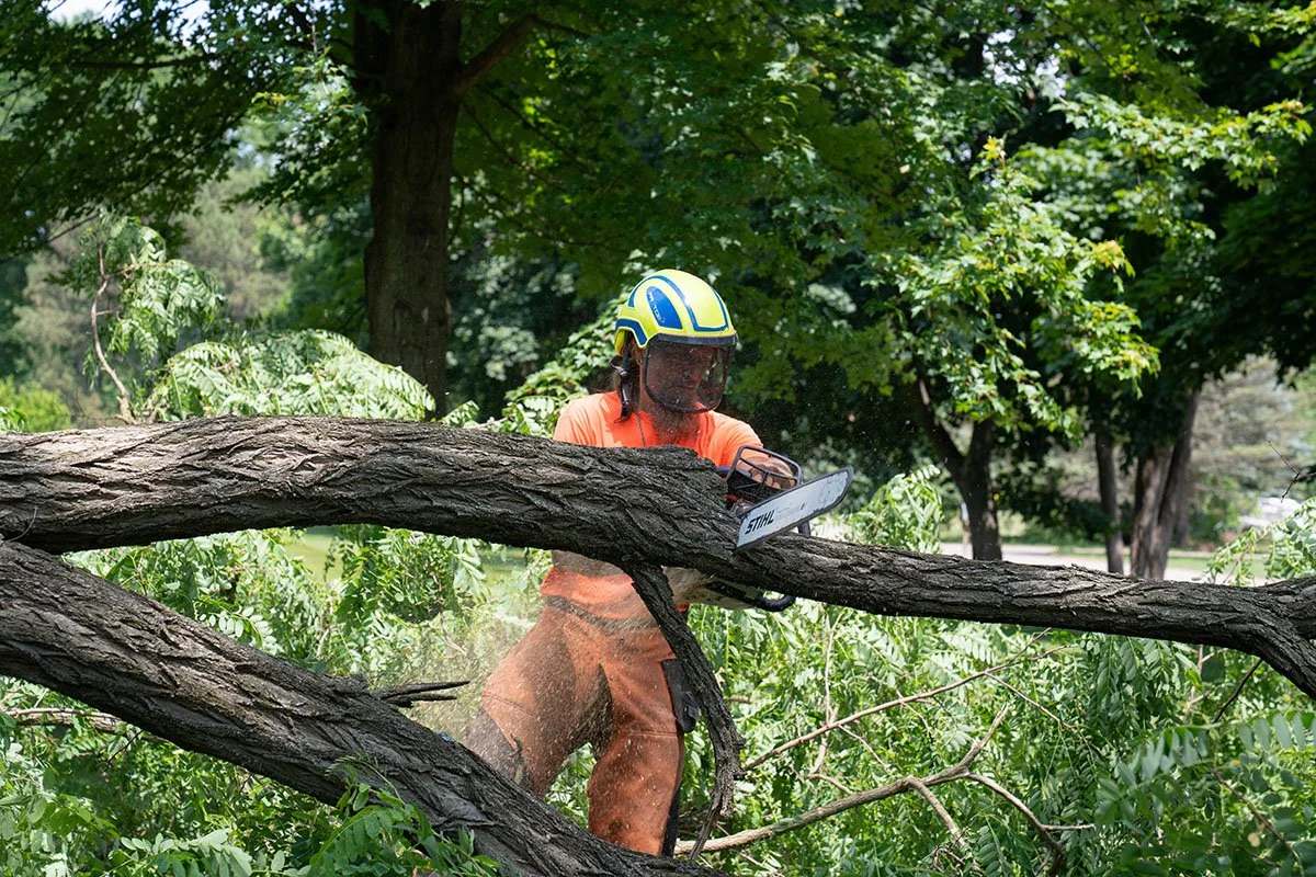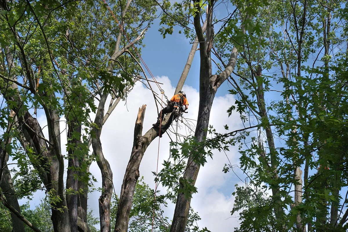 We follow ANSI Z133, the American National Standard for Arboricultural Operations, which governs PPE, chainsaw use, rigging, aerial work, and electrical hazard protocols. Our practices also align with applicable OSHA standards for our industry.